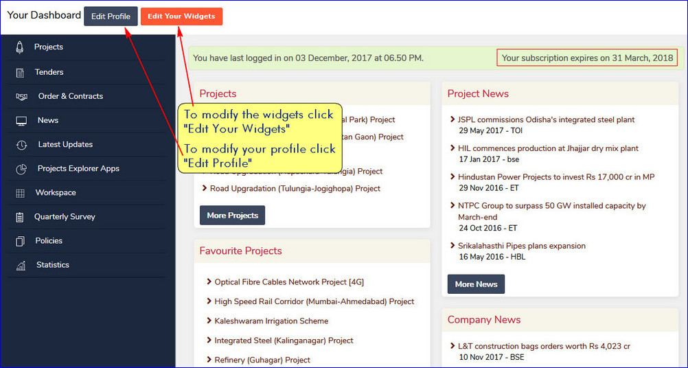 - Project News: News on projects in the sectors of your choice is listed in this widget.