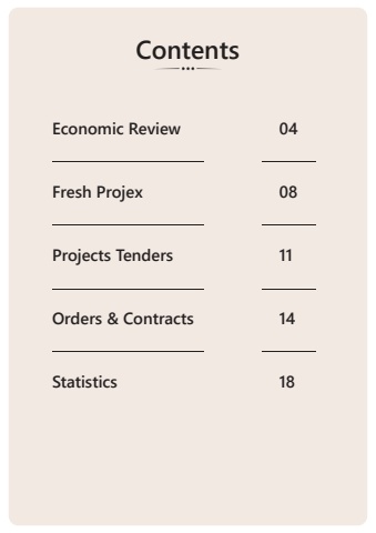 www.projectstoday.comAugust 2025Economic Review 3ContentsEconomic ReviewEight core industries increased by 7.9 percent in September 202205Order & ContractMontecarlo secures mega order worth Rs 4,800 cr for Hura-C OCP10Project ReviewDPR completed for Coimbatore Metro Phase-113SAARCBerger Paints Bangladesh to set up BDT 480 cr factory 18TendersFive tenders by NHAI for Tharad to Ahmedabad Expressway22ContentsEconomic ReviewFresh ProjexProjects TendersOrders & ContractsStatistics040811 1418